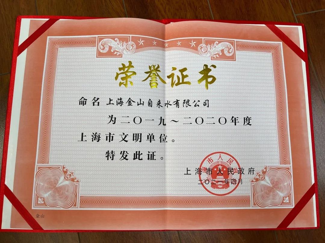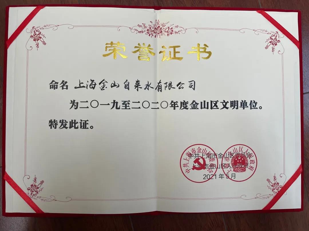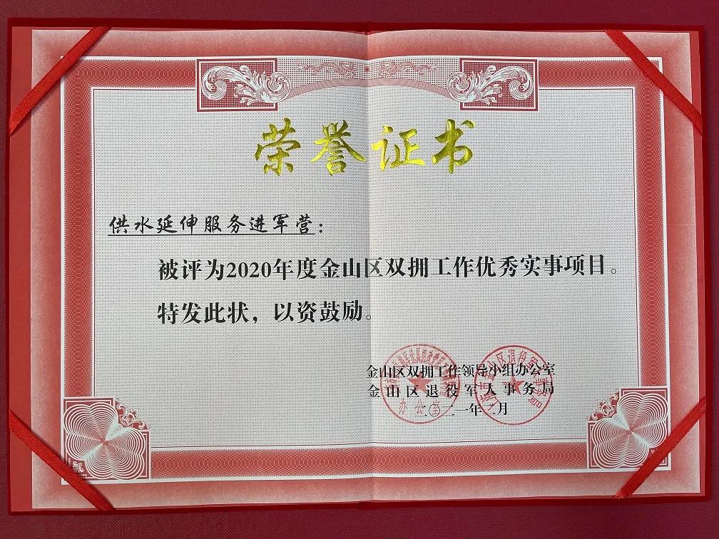 ▲公司“供水延伸服务进军营项目”被评为2020年度金山区双拥工作优秀实事项目。