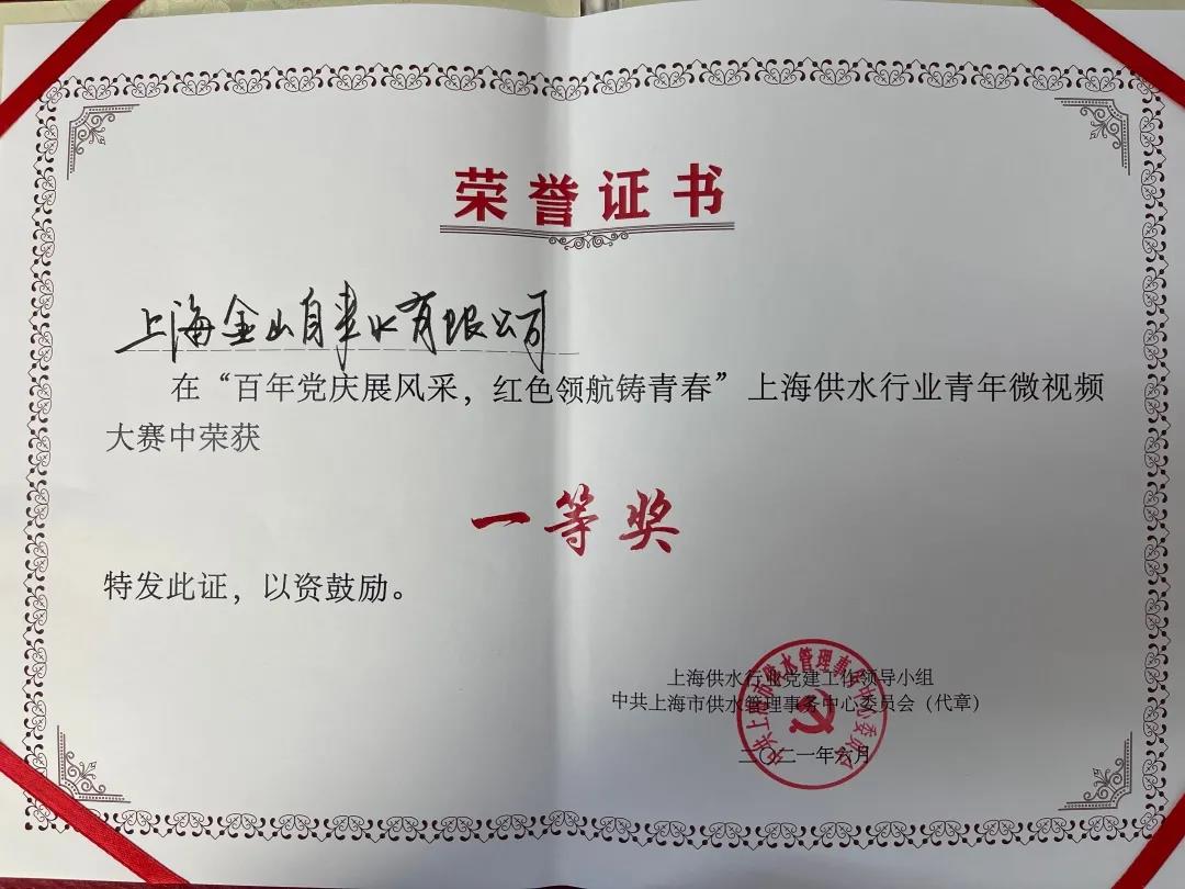 ▲公司在“百年党庆展风采,红色领航铸青春”上海供水行业青年微视频大赛中荣获一等奖。