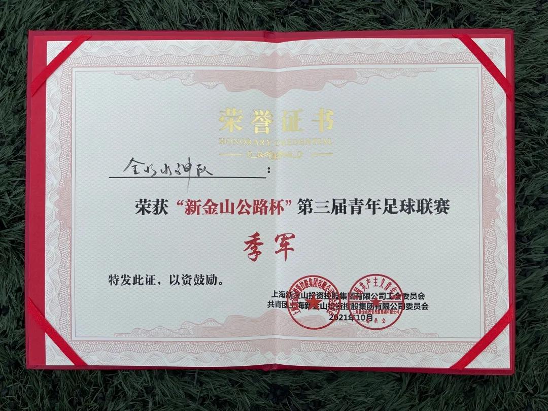▲公司荣获“新金山公路杯”第三届青年足球联赛季军。