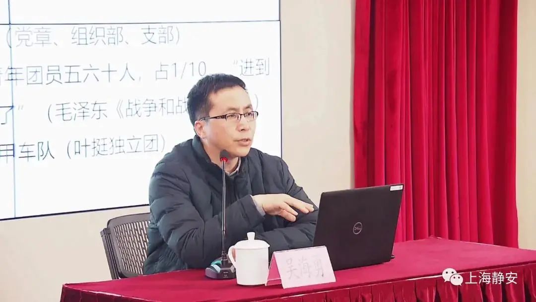 市委党史研究室专家吴海勇生动讲述了中共中央军委在上海艰苦的斗争历程以及周恩来、杨殷、彭湃等革命者的英雄事迹。1928年至1929年间,中共中央军委机关在上海运筹帷幄,对武装工农、举行起义、创建人民军队、指导红军建设等重大问题进行了早期实践与艰辛探索。现场,党员们还观看了情景短片《革命家书》,短片以沉浸式演绎的方式,再现了杨殷、彭湃等几位烈士的家国故事。
