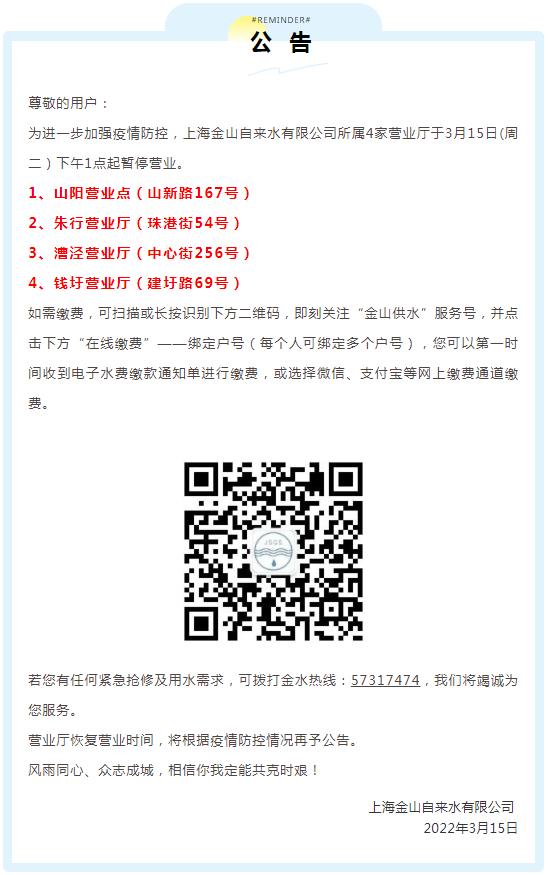 【公告】这4家营业厅将暂停营业!