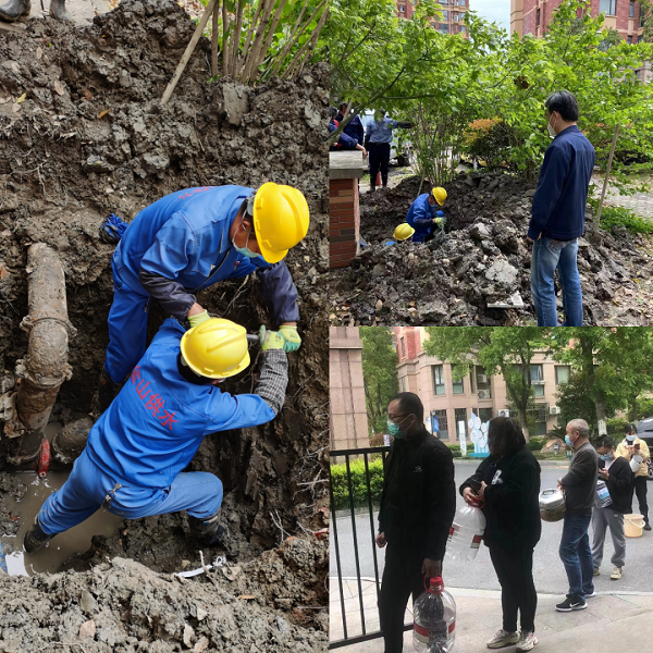 在疫情仍然复杂严峻的时候,为保障城市运行安全有序和居民用水需求,金山供水人坚持24小时待命,一有突发需紧急处置的情况,勇冲一线,不惧困难,不畏艰险,尽最大的努力,迅速解决居民用水问题。