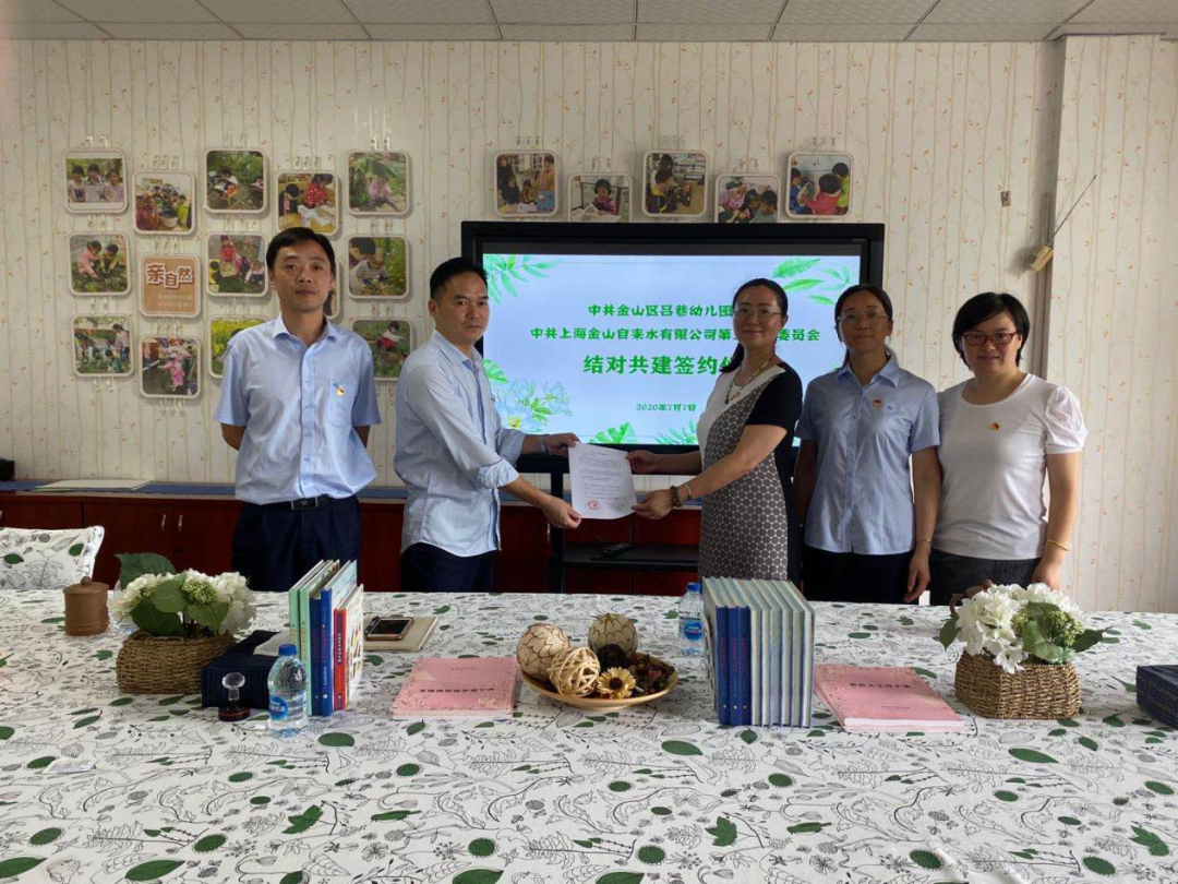 2020年7月7日,中共上海金山自来水有限公司第三支部委员会书记叶雪云带领支部成员和中共金山区吕巷幼儿园支部开展了结对共建签约仪式。
