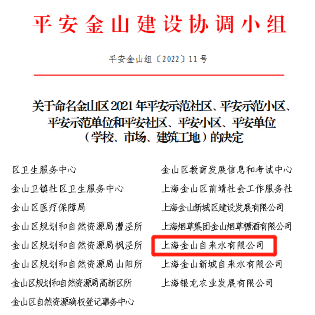 公司“四进”供水延伸服务荣获上海供水行业“十佳服务品牌”(入围奖)。