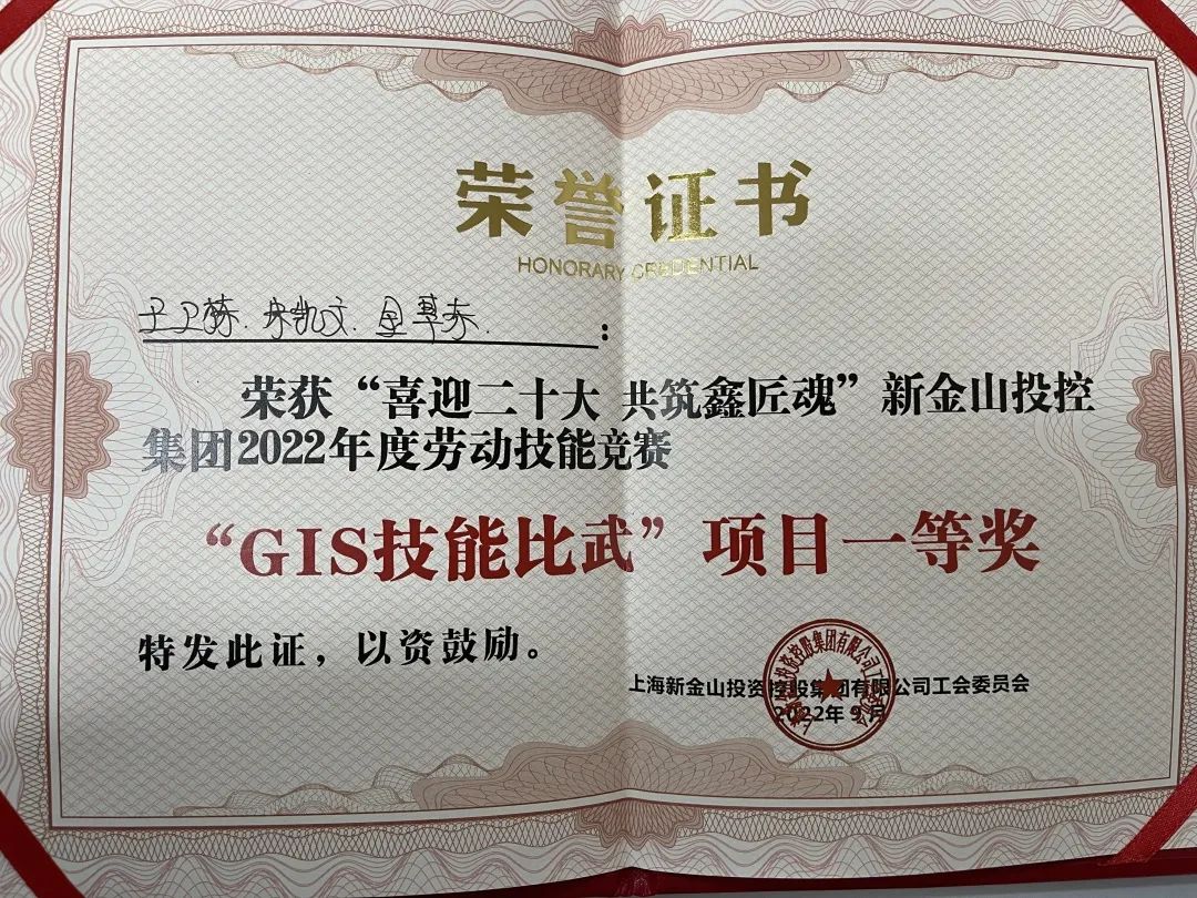 王卫栋、朱凯文、金旱东同志在新金山投控集团“喜迎二十大 共筑鑫匠魂”2021年度劳动技能竞赛“gis技能比武”项目中荣获一等奖。