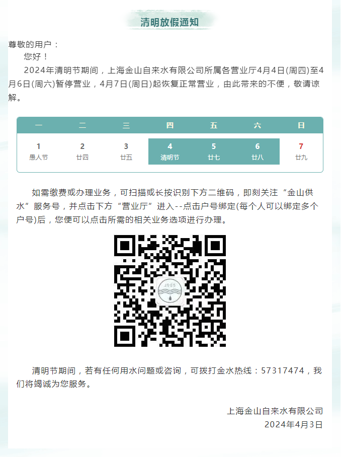 关于清明节期间营业厅暂停营业的通知