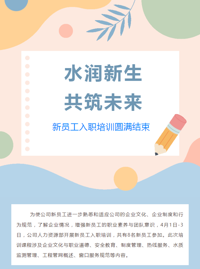 【水润新生 共筑未来】公司新员工入职培训圆满结束