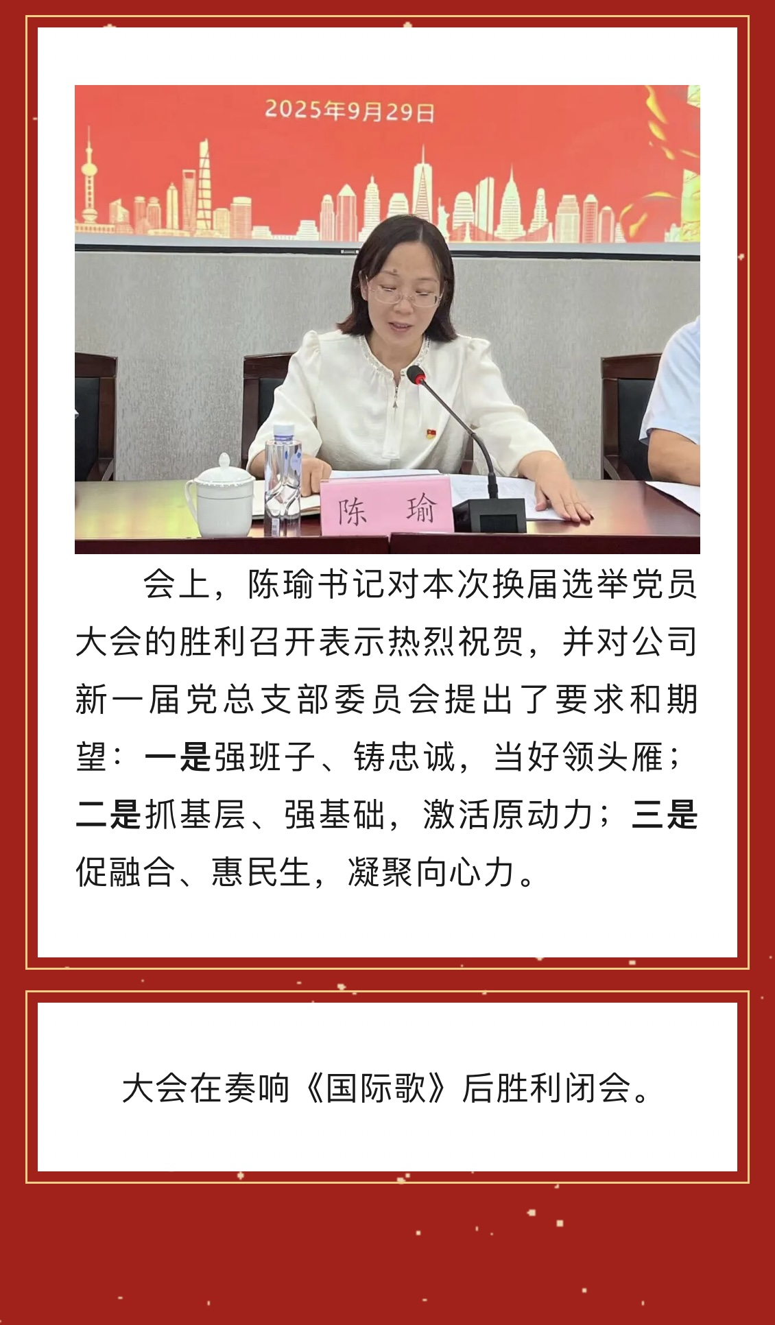金山自来水公司党总支部换届选举大会胜利召开