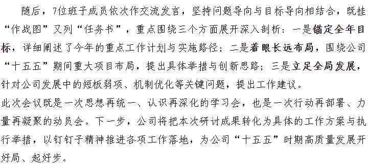 凝聚共识谋新篇 笃行实干启征程——公司召开工作务虚会暨班子成员专题研讨会